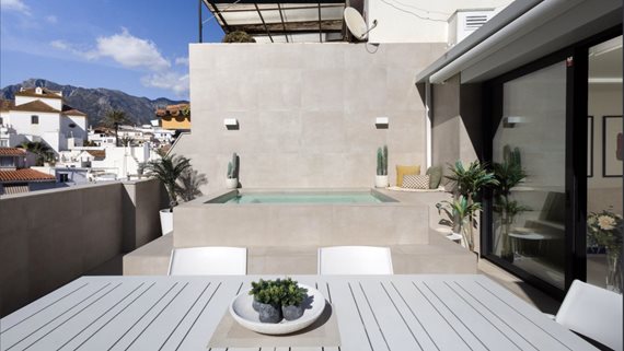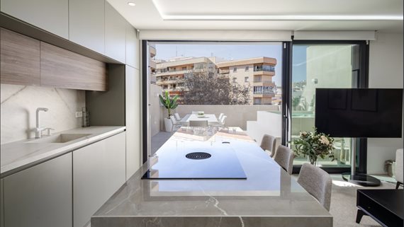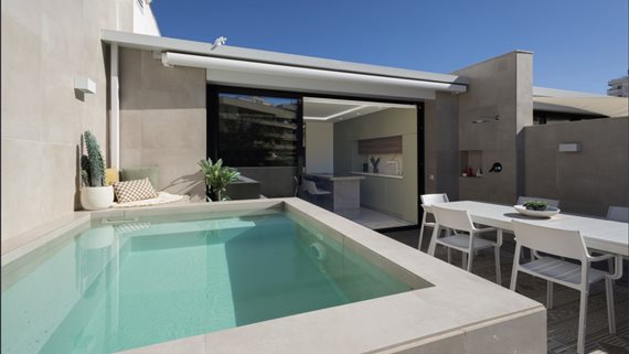 Dieses moderne Penthouse-Duplex vereint eine zentrale Lage mit hoher Wohnqualität. Nur wenige Schritte vom Meer entfernt, bietet es lichtdurchflutete Wohnbereiche mit offen gestalteter Küche, hochwertige Ausstattungsdetails und ein elegantes Design. Ein direkter Aufzug führt in die Wohnung und sorgt für diskrete Privatsphäre. Das Highlight ist die großzügige Dachterrasse mit Pool und weitem Blick auf die umliegende Landschaft – ein idealer Ort zum Entspannen und Genießen. Hochwertige Materialien, bodentiefe Fenster und eine durchdachte Raumaufteilung schaffen ein komfortables Wohnumfeld. Einkaufsmöglichkeiten, Gastronomie und Freizeitangebote befinden sich in unmittelbarer Nähe, was den Alltag besonders angenehm macht. Diese Immobilie eignet sich sowohl als Erstwohnsitz wie auch als Zweitwohnsitz für Menschen, die urbanes Wohnen mit exklusiven Rückzugsmöglichkeiten verbinden möchten.