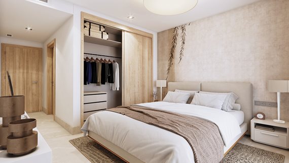 Die Wohnanlage umfasst moderne Apartments mit großen Terrassen, die nach Südost und Südwest ausgerichtet sind und dadurch viel Tageslicht bieten. Durch breite Fensterflächen ist der Übergang zwischen Wohnraum und Terrasse offen gestaltet. Zur Ausstattung gehören eine vollständig eingerichtete Küche mit Geräten, eingebaute Schränke, Klimaanlage sowie fertiggestellte Bäder. Die Anlage ist abgeschlossen und verfügt über Gartenbereiche, einen gemeinschaftlichen Pool mit Ausblick auf das Meer sowie unterschiedliche Parkmöglichkeiten, teilweise mit Abstellraum. In der Umgebung befinden sich Strände, Golfplätze und Einkaufsmöglichkeiten, die schnell erreichbar sind. Damit sind die Wohnungen sowohl für Eigennutzer als auch für Käufer mit Interesse an einer Vermietung geeignet.