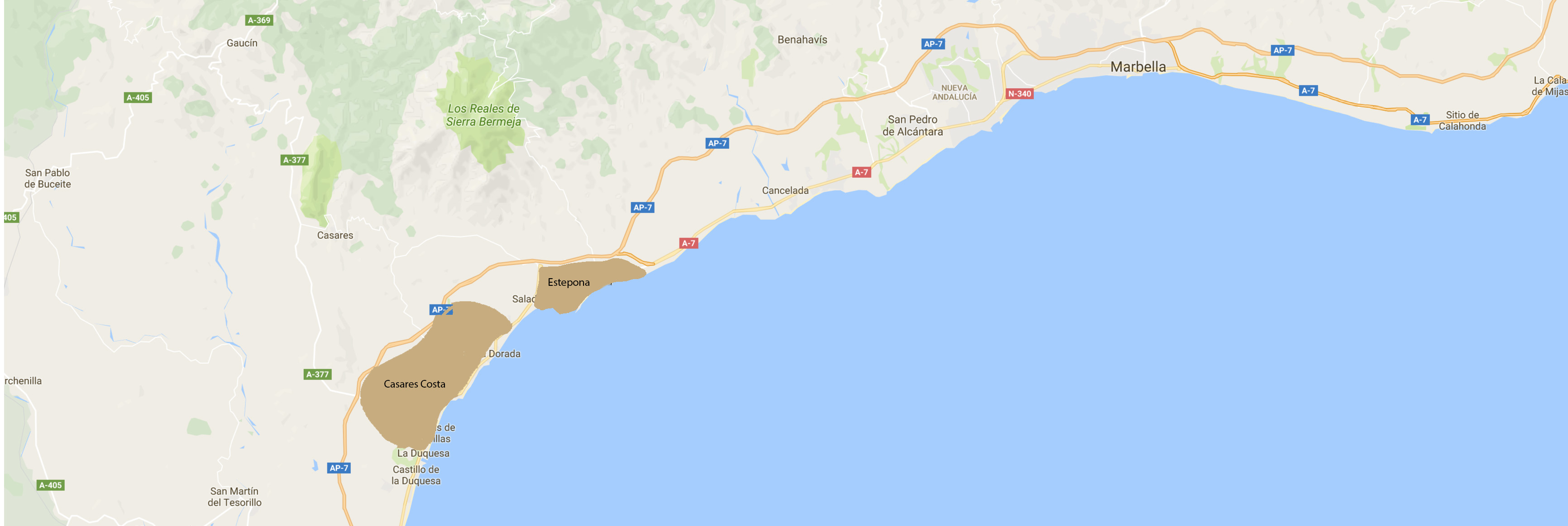 Im Rücken der Ortschaft steigt eines der imposantesten Küstengebirge der Costa del Sol, die Sierra Bermeja, bis auf 1449 Meter auf und sorgt für ein wunderbares Mikroklima. Auf der anderen Seite zeigt sich der gewaltige Felsen von Gibraltar und dahinter werden viele Kilometer der afrikanischen Küste erkennbar.
